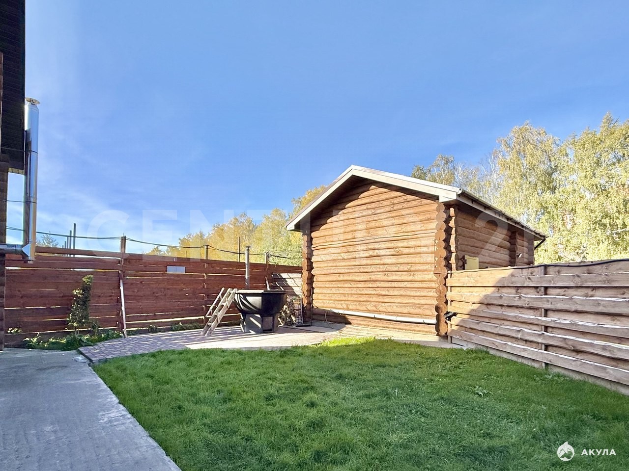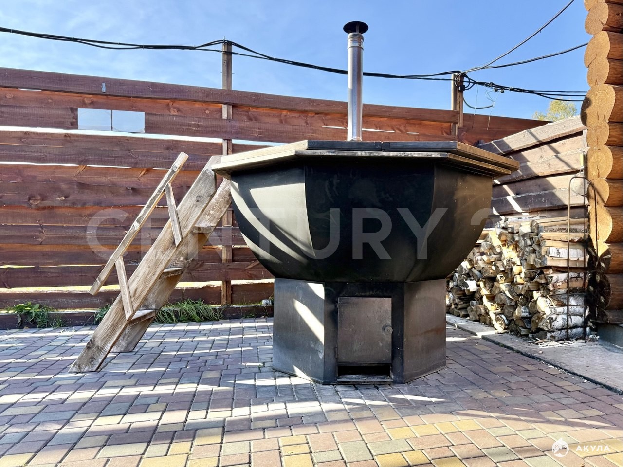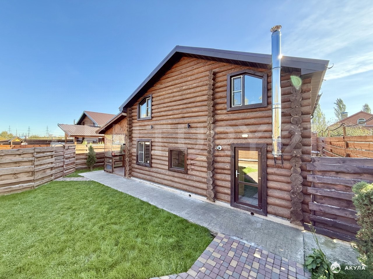 Характеристики:Фундамент монолитный.Деревянный сруб из сосны.Окна пластиковые.Кровля метало-черепица.По всей територии брусчатка.