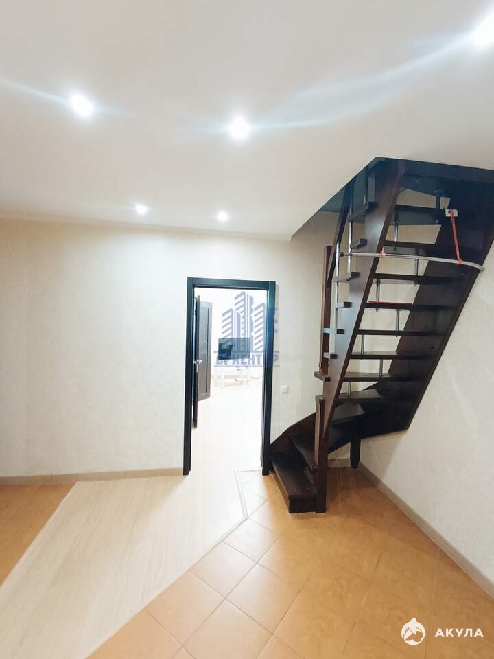 - Двухуровневая квартира площадью около 100 кв.м, расположенная на пятом и шестом этажах шестиэтажного дома, построенного в 2013 году.