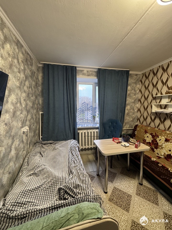 Продается комната в юго-западном районе. Комната площадью 12, 2 квадрата. Новое пластиковое окно, поменяна вся электрика, есть свой счетчик. На полу линолеум, при входе теплый пол. Чистый подъезд, стоит домофон. Развитая инфраструктура, рядом детский сад и школа. Остановка в шаговой доступности, возможность уехать в любую точку города. Взрослые собственники. Без Долгов и обременений! Звоните! Оперативный показ!