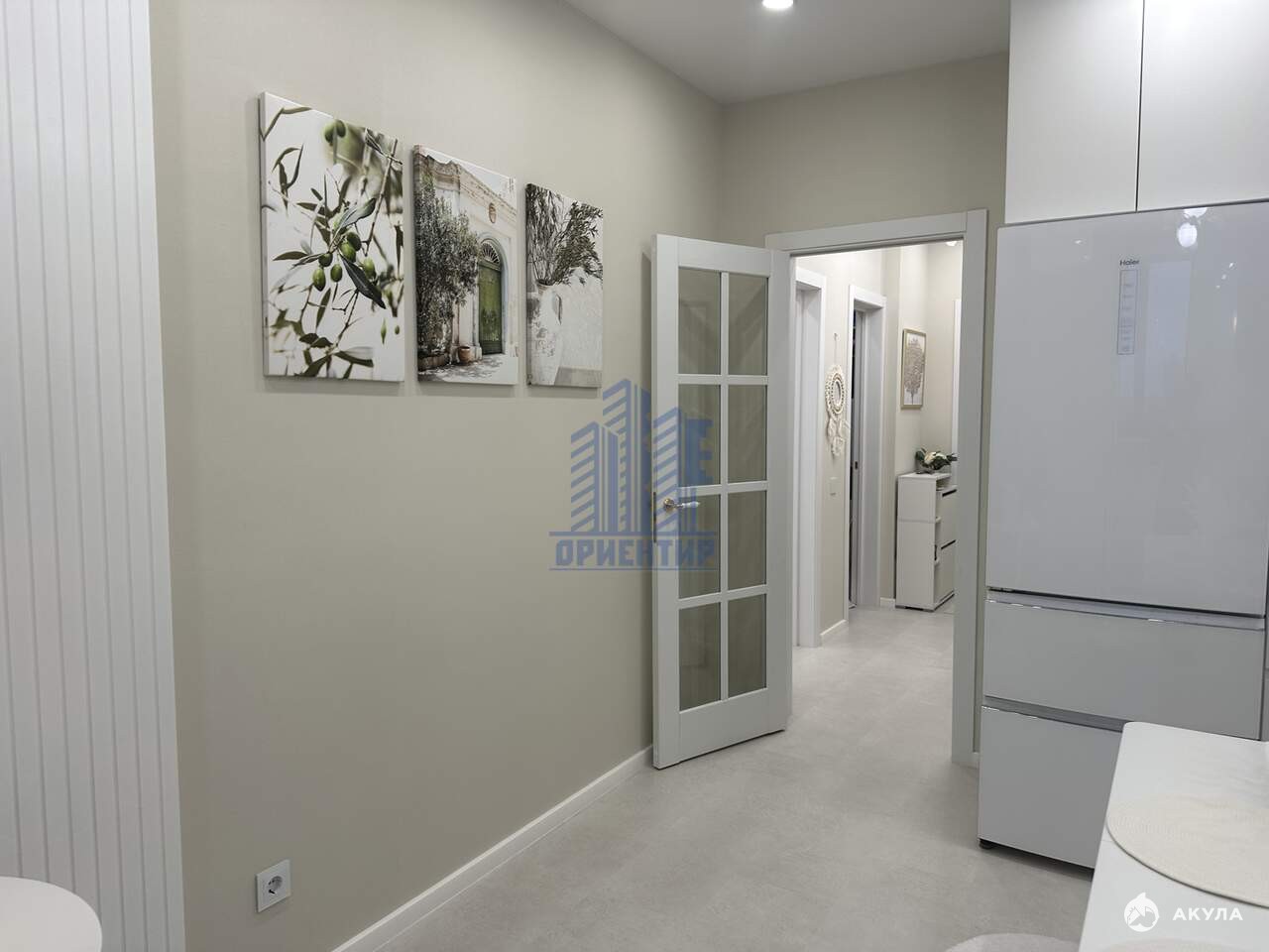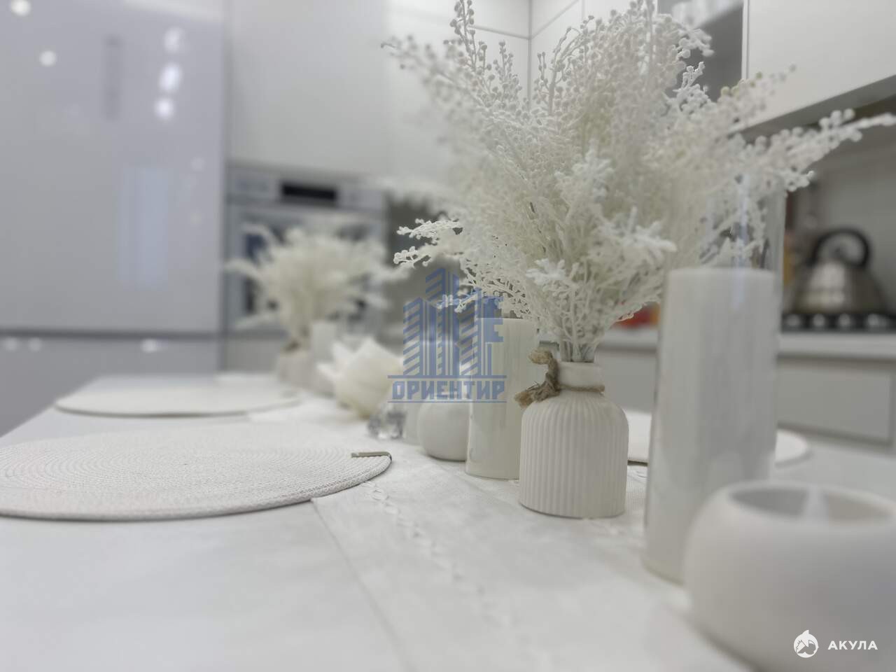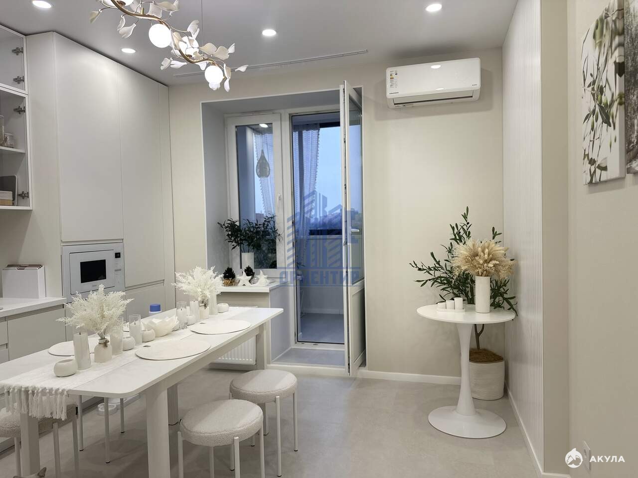 - Эстетика и качество: Высокие потолки (2, 8 м) и отделка из качественного кварцвинила в светлых тонах делают квартиру еще более привлекательной. На стенах – красивые обои и стильная стеновая реечная панель, создающие уютную атмосферу.