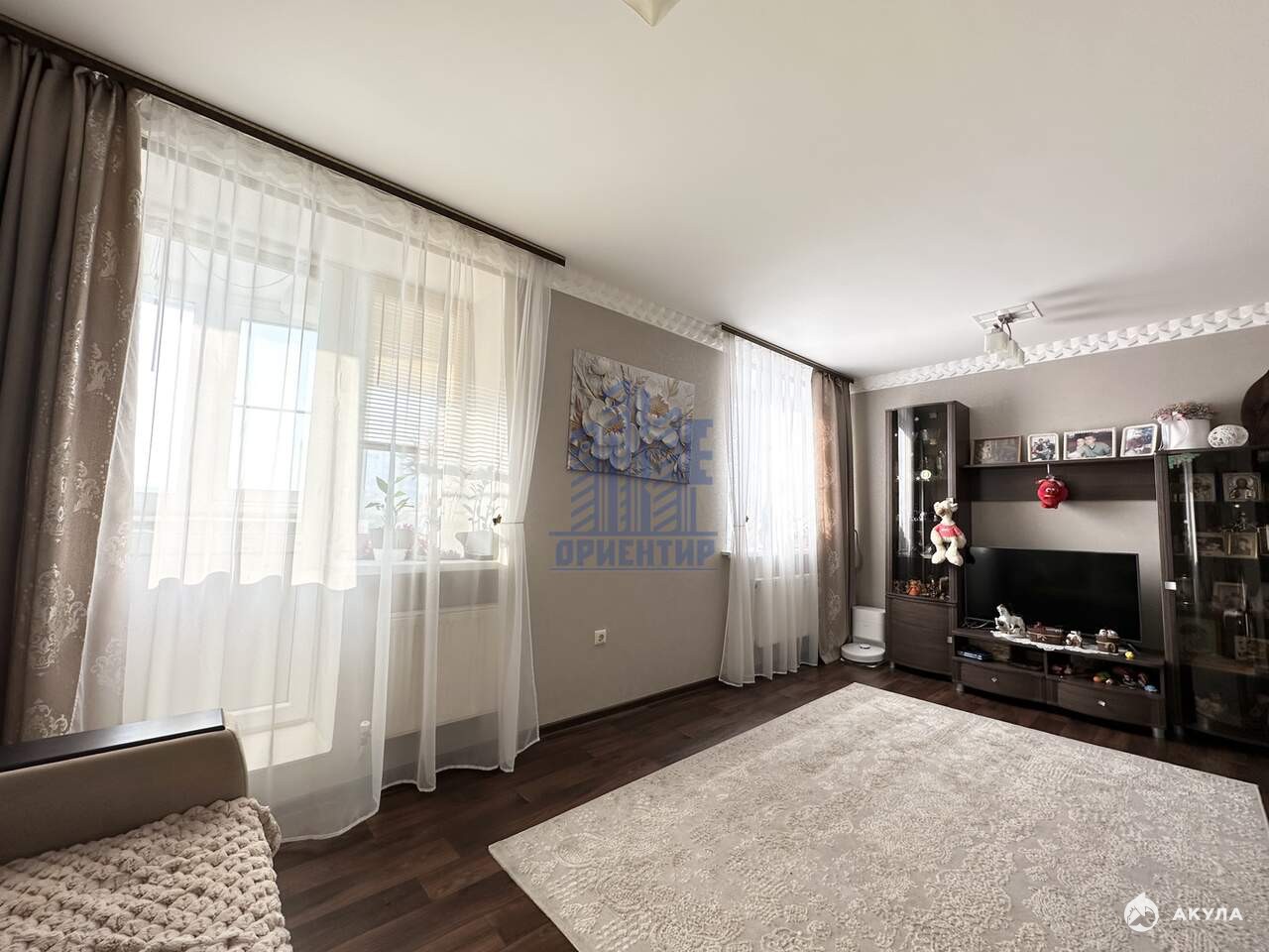 - Прекрасная планировка: Уютный зал с двумя окнами обеспечивает максимум света и комфорта. Оборудованный балкон с полками – отличное место для отдыха.