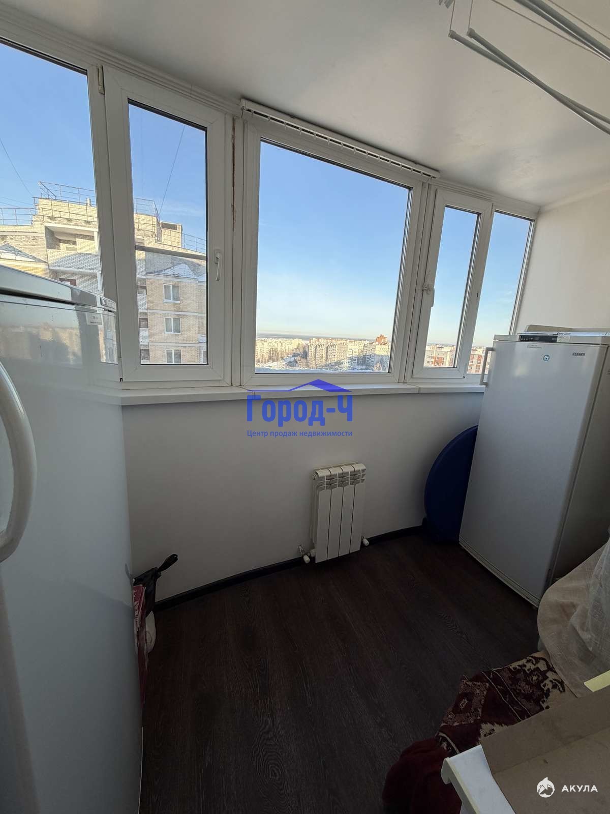 Имеется утепленная лоджия около 4 квадратных метров с потрясающим видом на город и Волгу