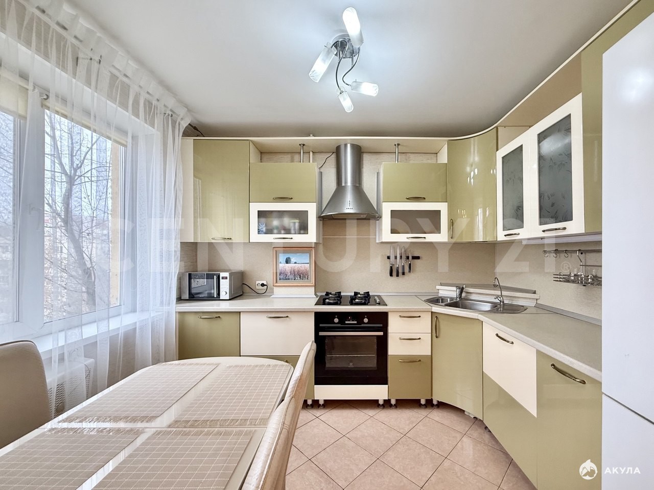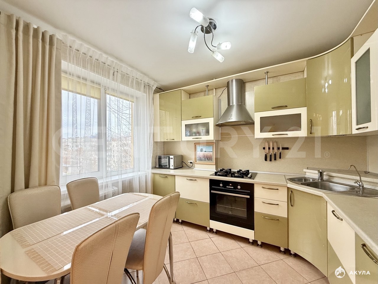 Вся встроенная мебель , частично встроенная техника, мягкая и корпусная мебель - остается.