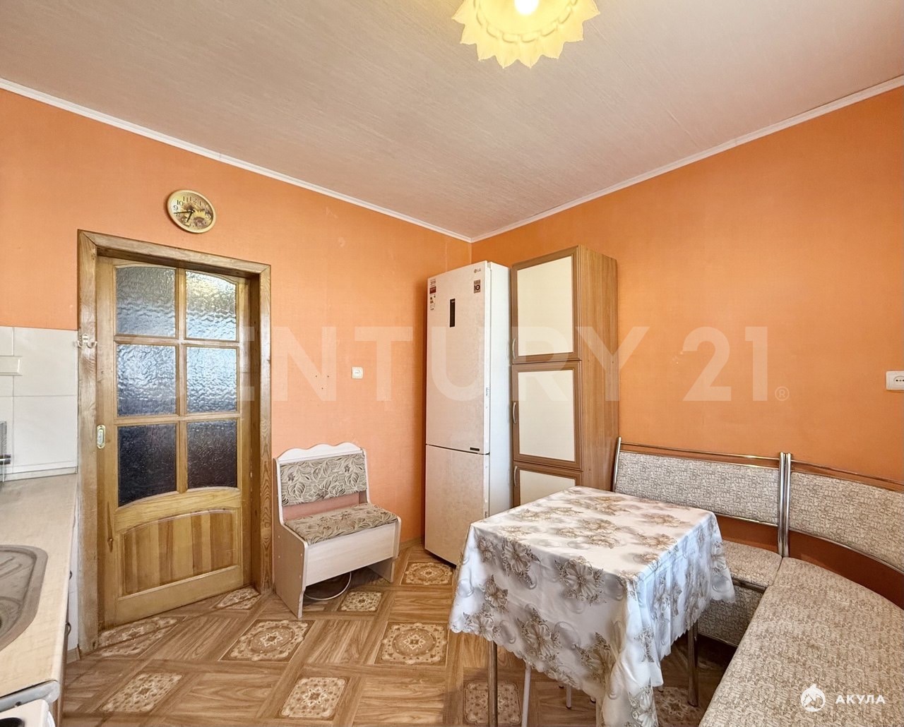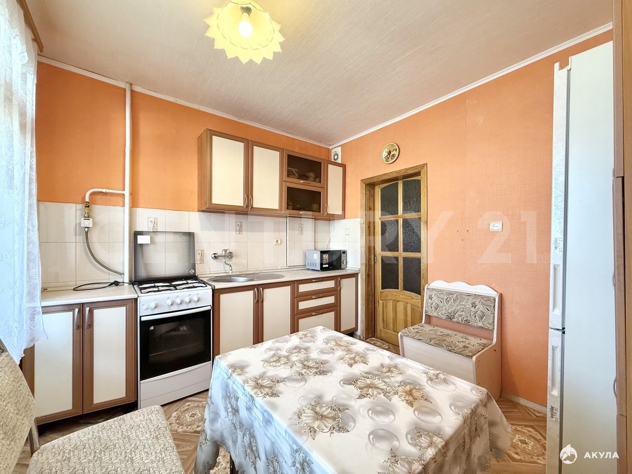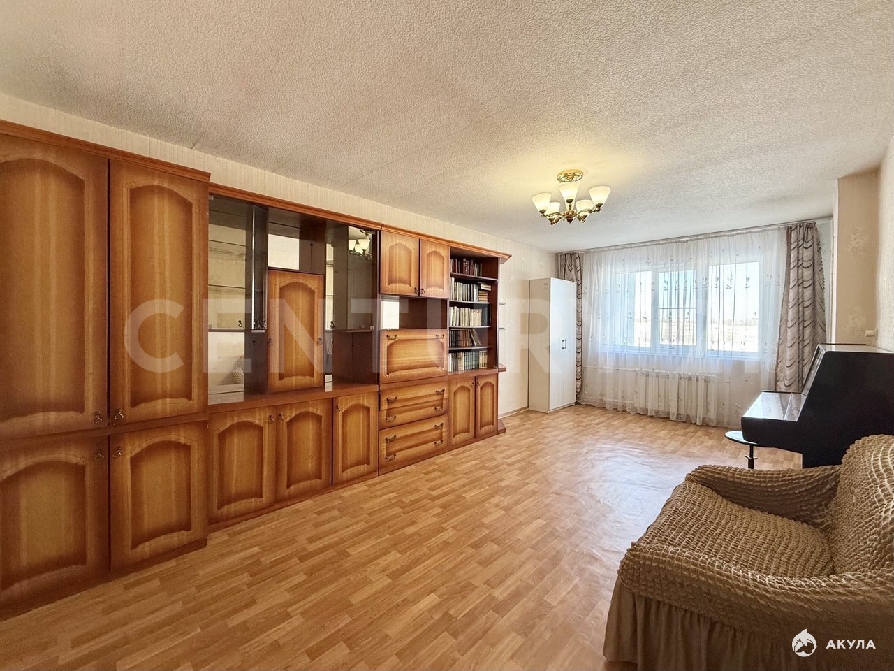 В квартире остаются:На кухне - кухонный гарнитур, холодильник, стол, угловой диванВ комнатах — стенка, шкафы, диван, кровать, кресло, пианино, компьютерный стол.