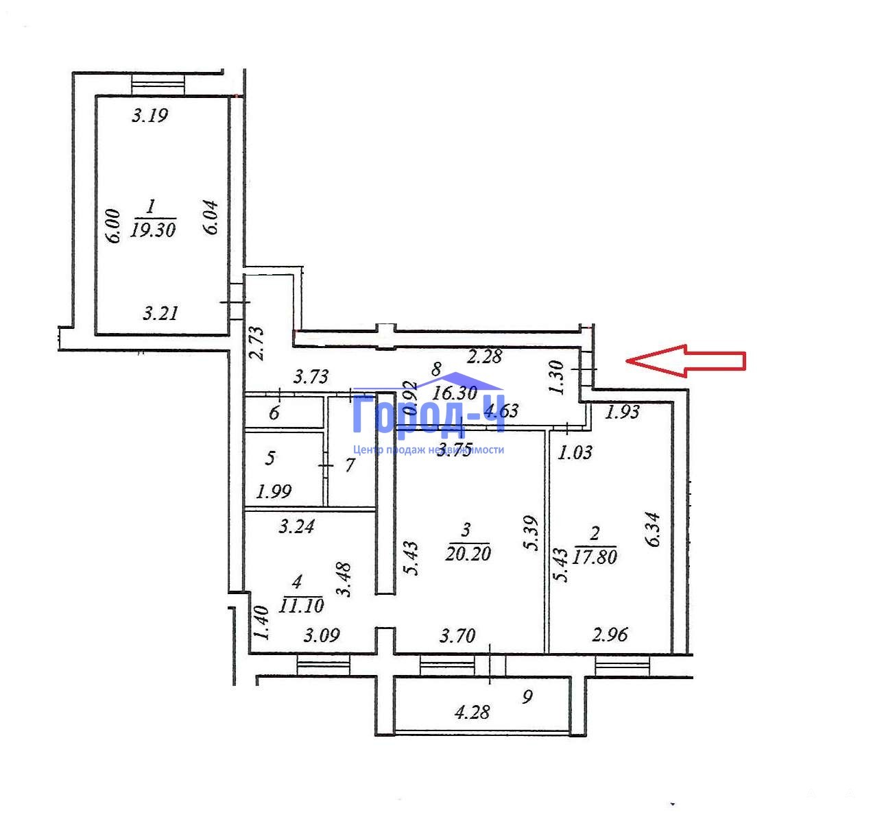 Площадь комнат 20.2 кв.м, 17.8 кв.м, 19.3 кв.м, кухня 11.10 кв.м.
