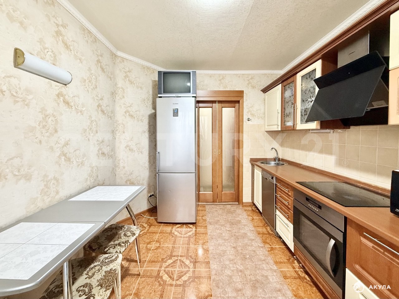 Частично мебель и встроенная техника остается.