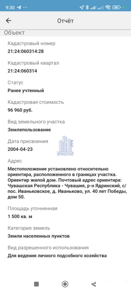 - Площадь участка